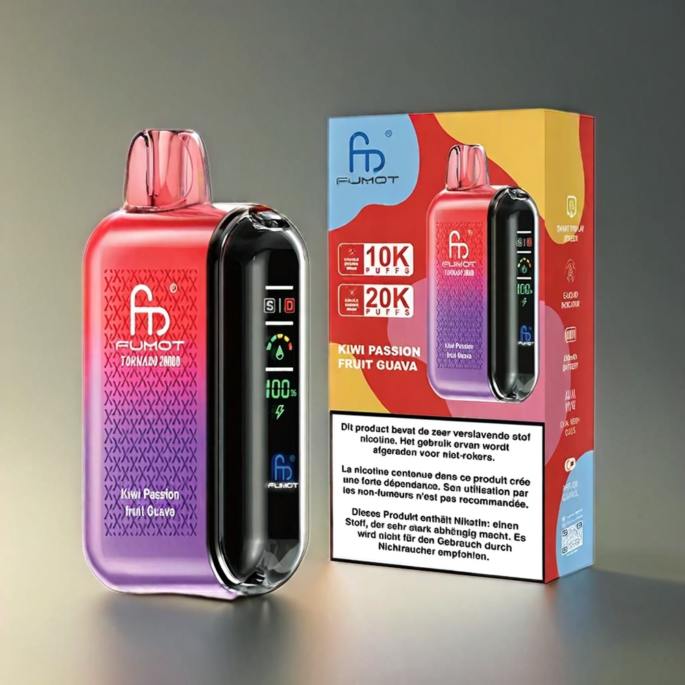 Fumot Tornado 20000 Puffs Norge Engros – Kiwi Pasjonsfrukt Guava med Dual Mesh Coil, 20ml E-liquid, 850mAh Batteri